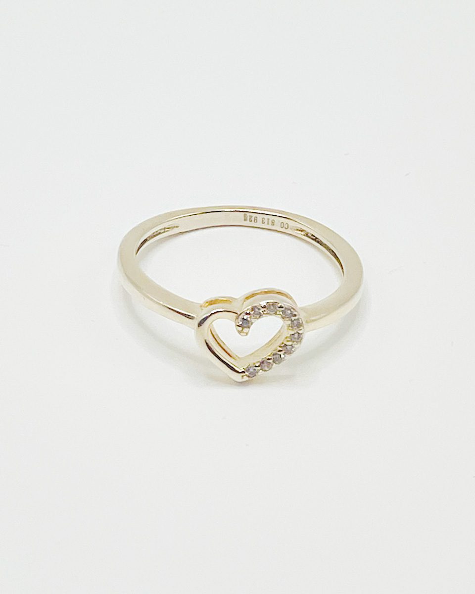 Anillo de plata bañada en oro con corazón con circonita (talla 14)