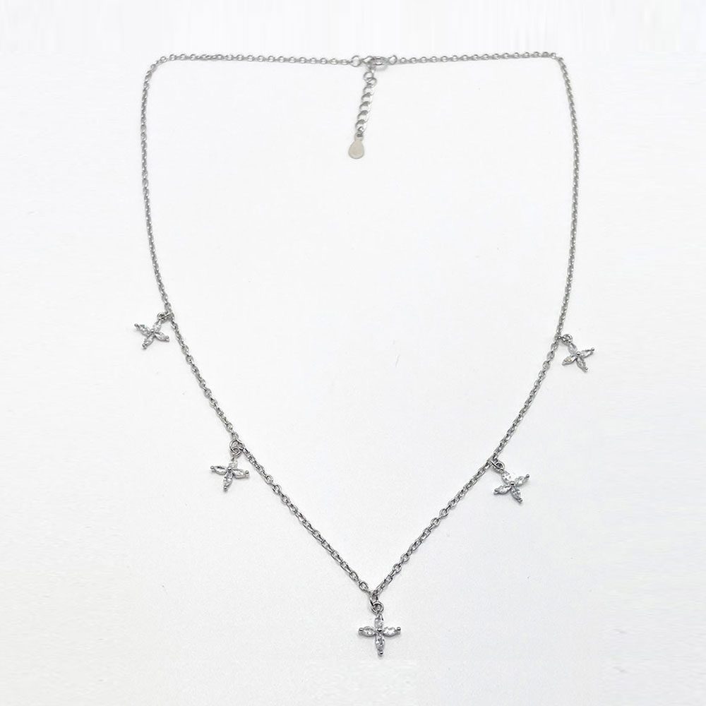 Gargantilla con varios colgantes de flor de circonitas blancas