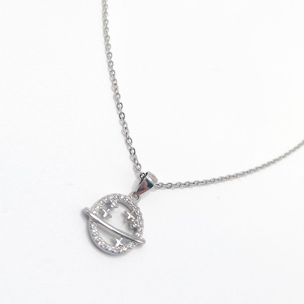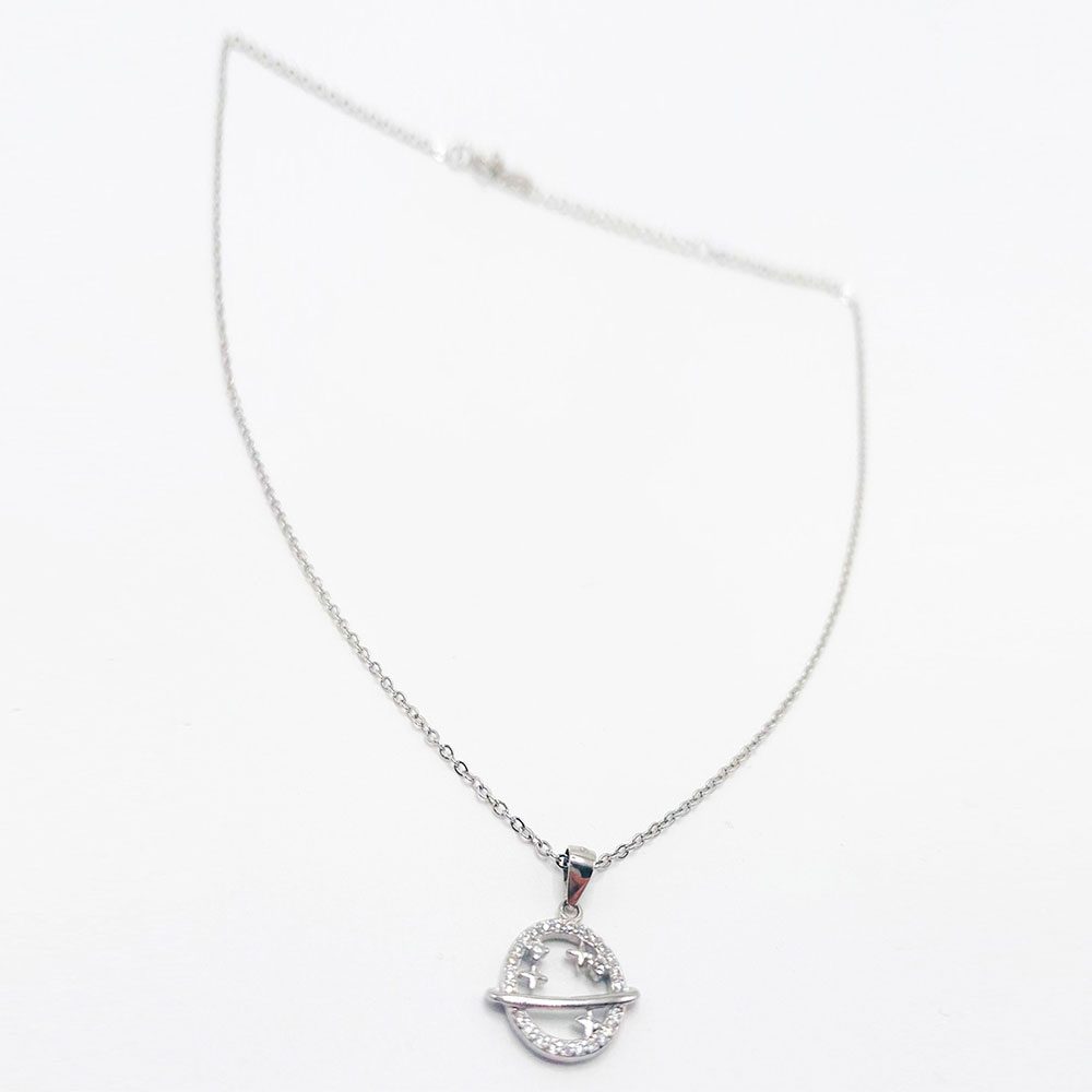 Gargantilla de plata de 45cm de largo con colgante de planeta con circonitas blancas