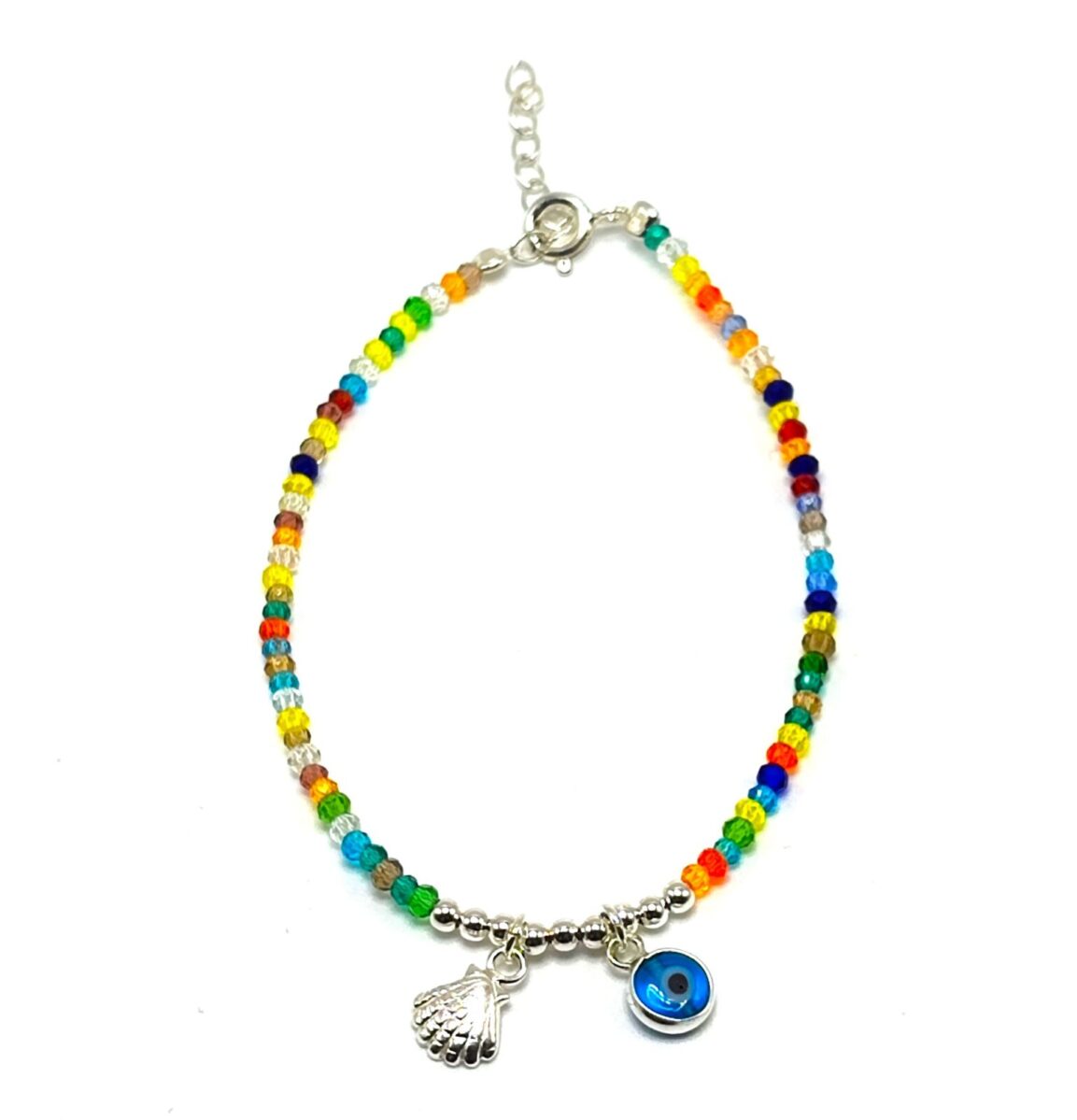 Pulsera de plata y piedras de colores Concha y ojo turco.
