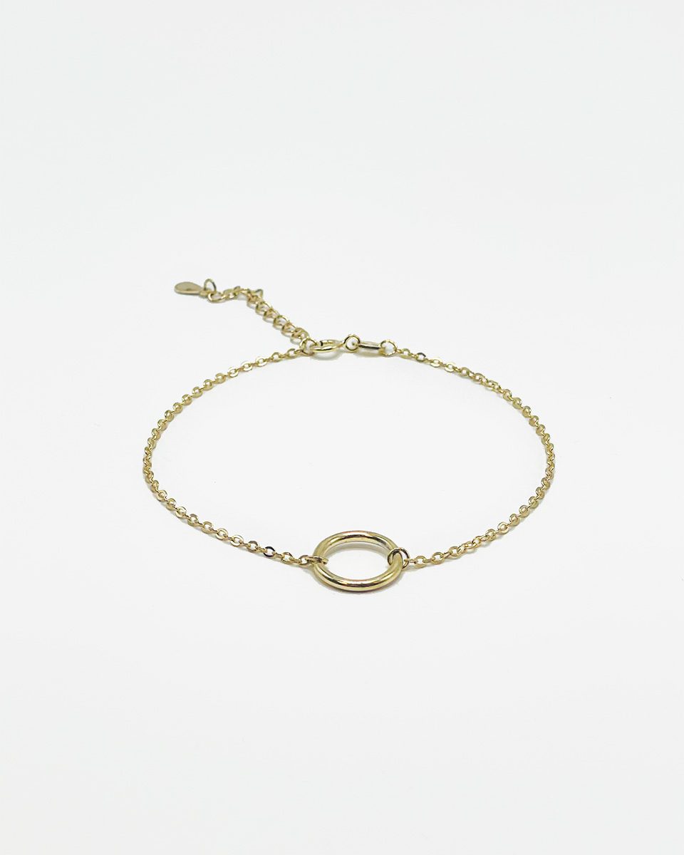 Pulsera chapada en oro con cadena y un aro en el centro